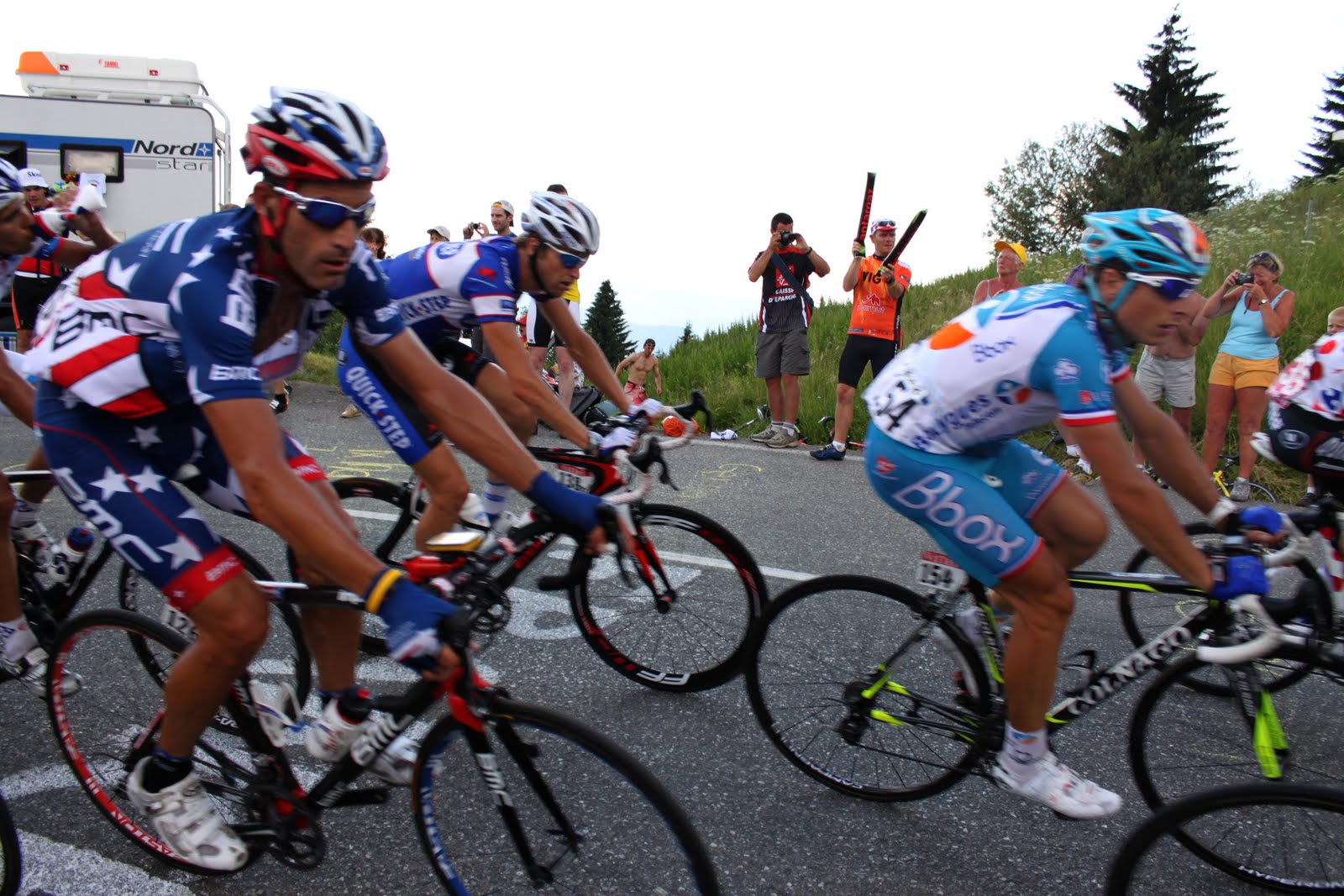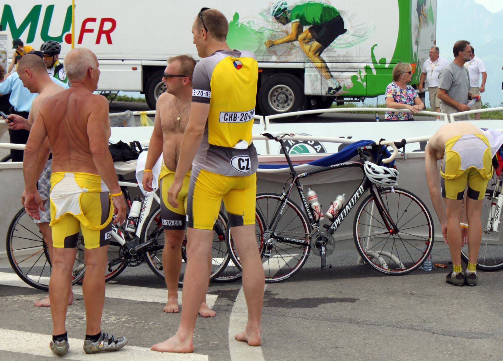 We rode our bikes from the tent to the summit at 11 a.m. and soaked up the electric atmosphere at the top. Incredible. I got shouts of encouragement in at least four languages.
